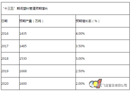 《中國塑料管道行業“十三五”期間(2016-2020)發展建議》認為,“十三五”期間是塑料管道行業發展中的重要時期,在**相關政策的帶動下,近年來國內塑料管材業發展呈現強勁增長態勢,成為國內塑料加工業的主力軍。“十三五”期間,塑料管道生產量將保持在3%左右的年均增長速度,到2020年,預期塑料管道長度在各類材料管道中平均市場占有率超過55%。各種政策和數據表明,管材行業的寒冬已近尾聲,后期發展值得期待。金聯創訊(市場分析師:朱秋平)